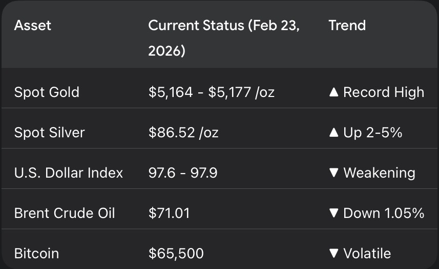 PHNOM PENH — Gold prices surged to historic highs on Monday, February 23, 2026, as a perfect storm of geopolitical instability and radical shifts in U.S. trade policy sent investors scrambling for safe-haven assets. Spot gold broke through the psychological barrier of $5,100, peaking near $5,177 per ounce, marking its strongest performance since late January.
